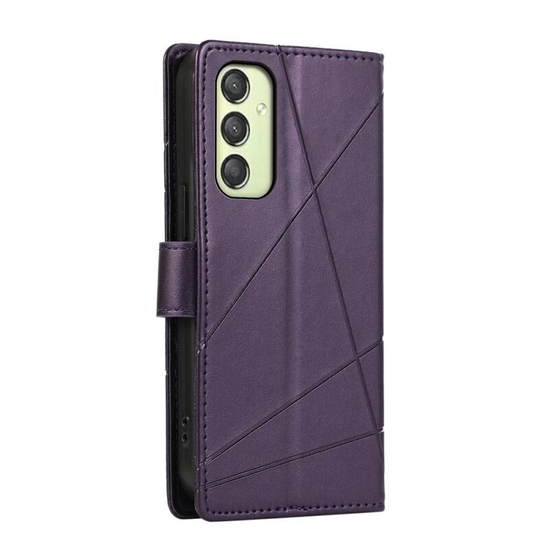 Θήκη τηλεφώνου Samsung Galaxy A25 5G Global PU με ανάγλυφη υφή γνήσιου δέρματος και γραμμές (Μωβ)
