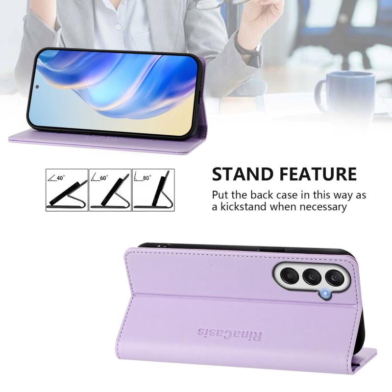 For Samsung Galaxy A25 5G Global RC01 Dual-Folded Magnetic Suction RFID Leather Phone Case(Light Purple)