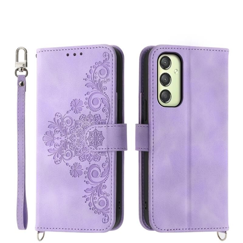 Για Samsung Galaxy A25 5G Global Skin-feel Λουλούδια ανάγλυφο πορτοφόλι δερμάτινη θήκη τηλεφώνου (μωβ)