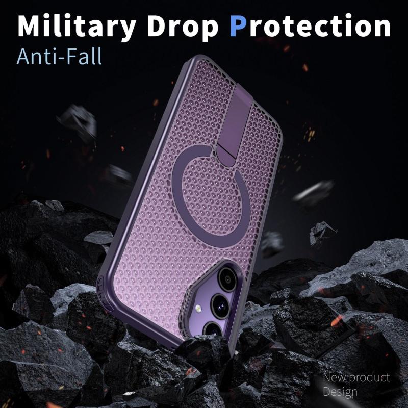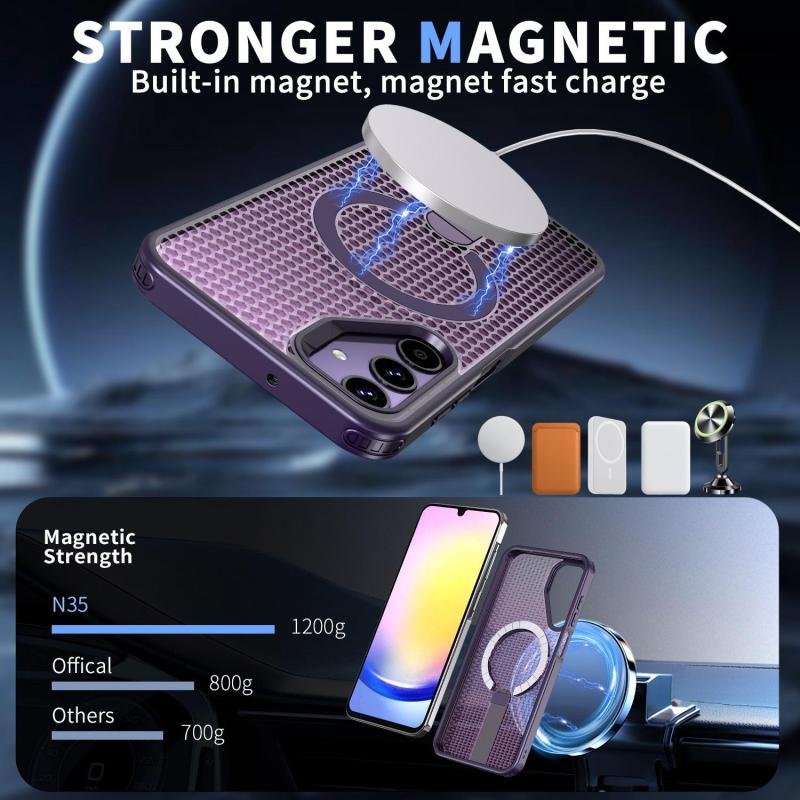For Samsung Galaxy A25 5G Honeycomb Cooling MagSafe Holder Phone Case(Purple)