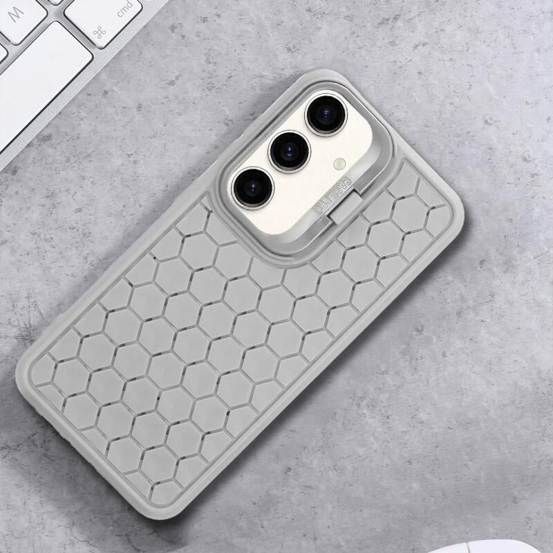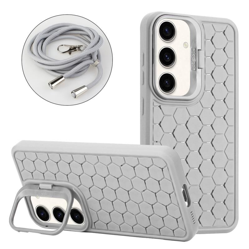 Για Samsung Galaxy A25 5G 5G κηρήθρα ακτινοβολία κάτοχος TPU τηλέφωνο υπόθεση με κορδόνι (Γκρι)