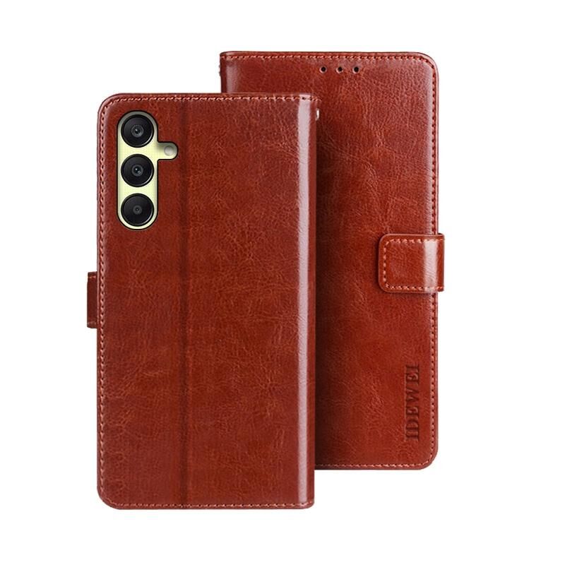 Θήκη τηλεφώνου δερμάτινη με υφή Crazy Horse για Samsung Galaxy A25 5G idewei (Λευκό) (Καφέ)