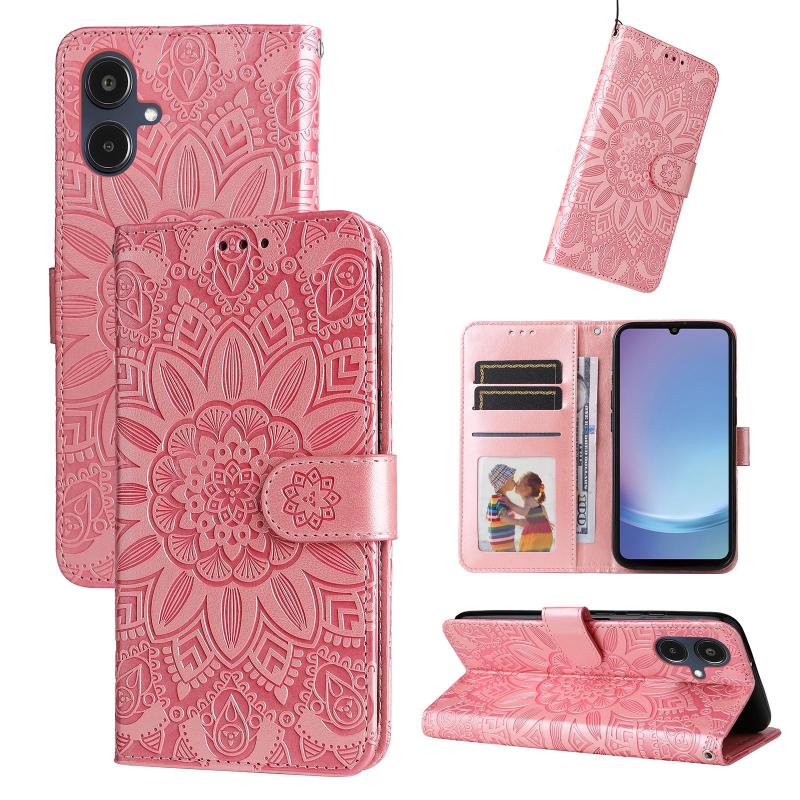 For Samsung Galaxy A25 5G Japan Version / A25e Embossed Sunflower Leather Phone Case(Rose Gold)