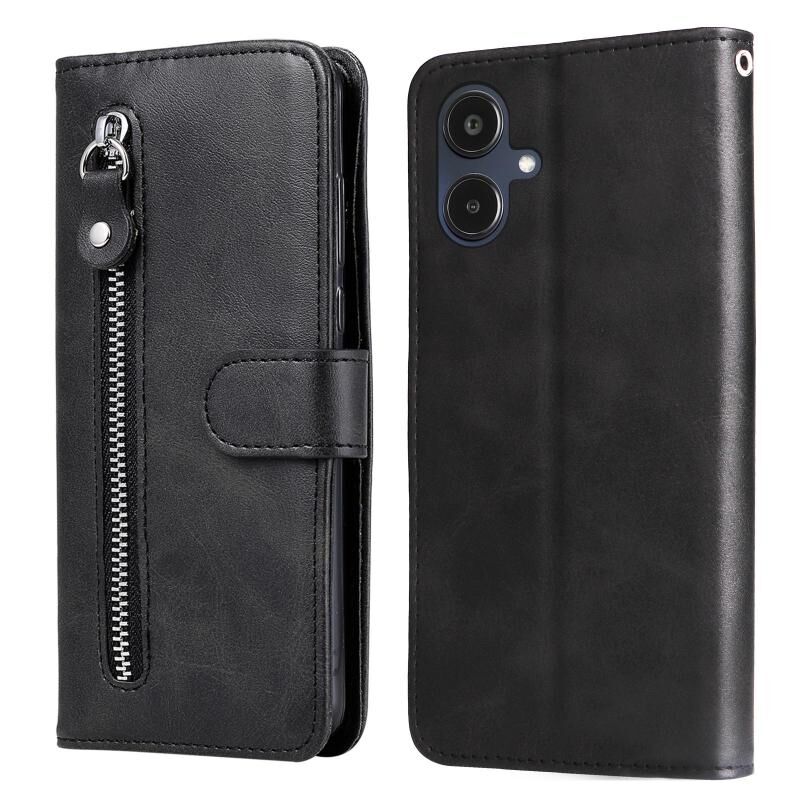 Θήκη τηλεφώνου από δέρμα με υφή μοσχαριού και φερμουάρ για Samsung Galaxy A25 5G έκδοση Ιαπωνίας / A25e (Χρυσό ροζ)
