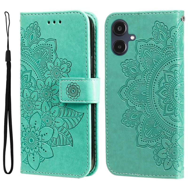 Θήκη τηλεφώνου από δέρμα με ανάγλυφο επτά πέταλα λουλουδιών για Samsung Galaxy A25 5G έκδοση Ιαπωνίας / A25e (πράσινο)