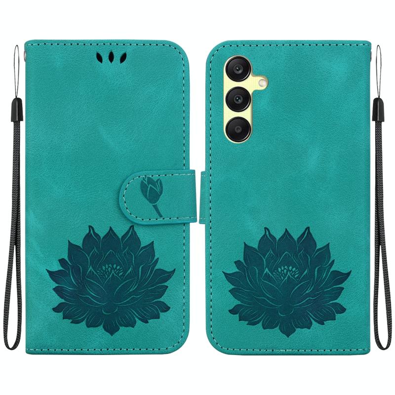 For Samsung Galaxy A25 5G Lotus Embossed Leather Phone Case(Green)