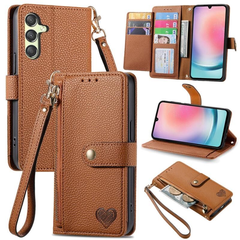 Για το Samsung Galaxy A25 5G αγάπη φερμουάρ Lanyard δερμάτινη θήκη τηλεφώνου (καφέ)