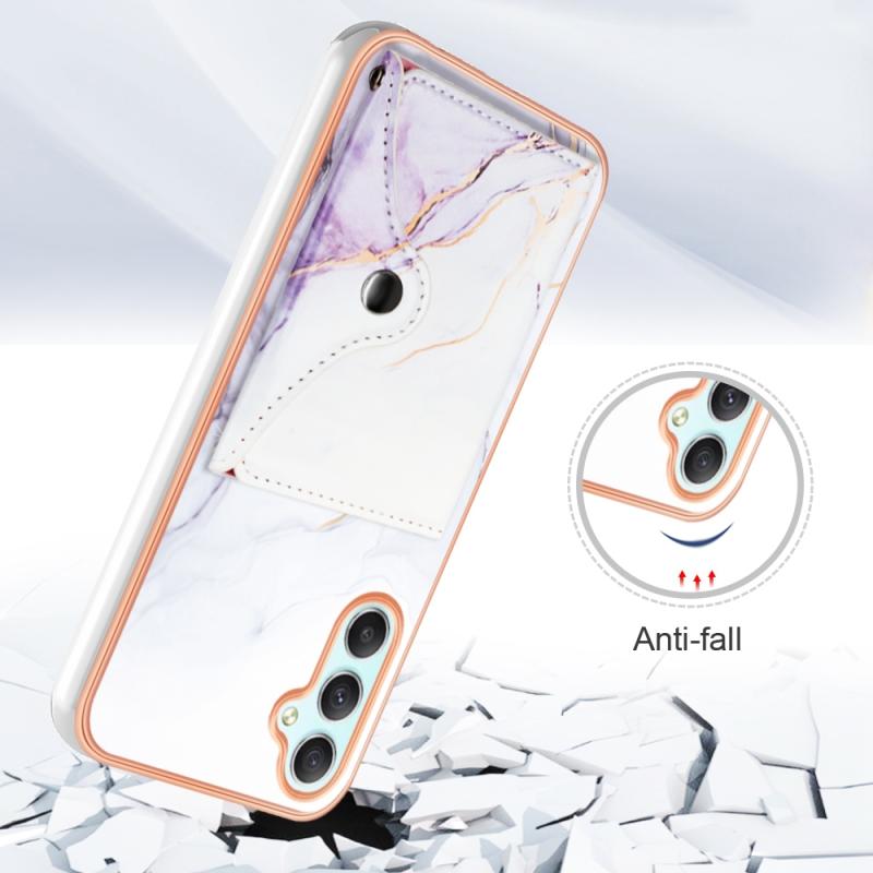 For Samsung Galaxy A25 5G Marble Pattern IMD Card Slot Phone Case(White Purple)