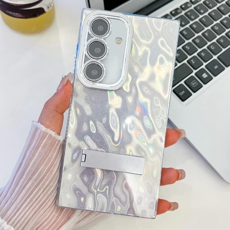 Για Samsung Galaxy A25 5G Επιμετάλλωση Glitter Υφή Πτυσσόμενα κάτοχος TPU τηλέφωνο υπόθεση με φακό ταινία (Λευκές Ρυτίδες)