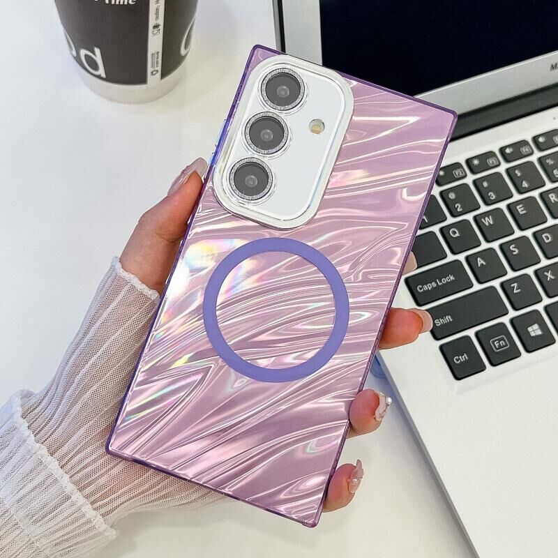 Θήκη κινητού τηλεφώνου Samsung Galaxy A25 5G με υφή επιμετάλλωσης, MagSafe, TPU και μεμβράνη φακού με γκλίτερ (Μωβ κυματισμοί νερού)