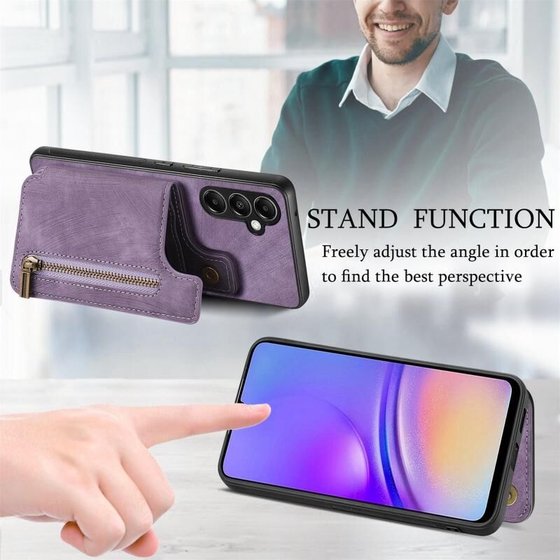 Για Samsung Galaxy A25 5G Retro δέρμα φερμουάρ πορτοφόλι πίσω θήκη τηλεφώνου (μωβ)