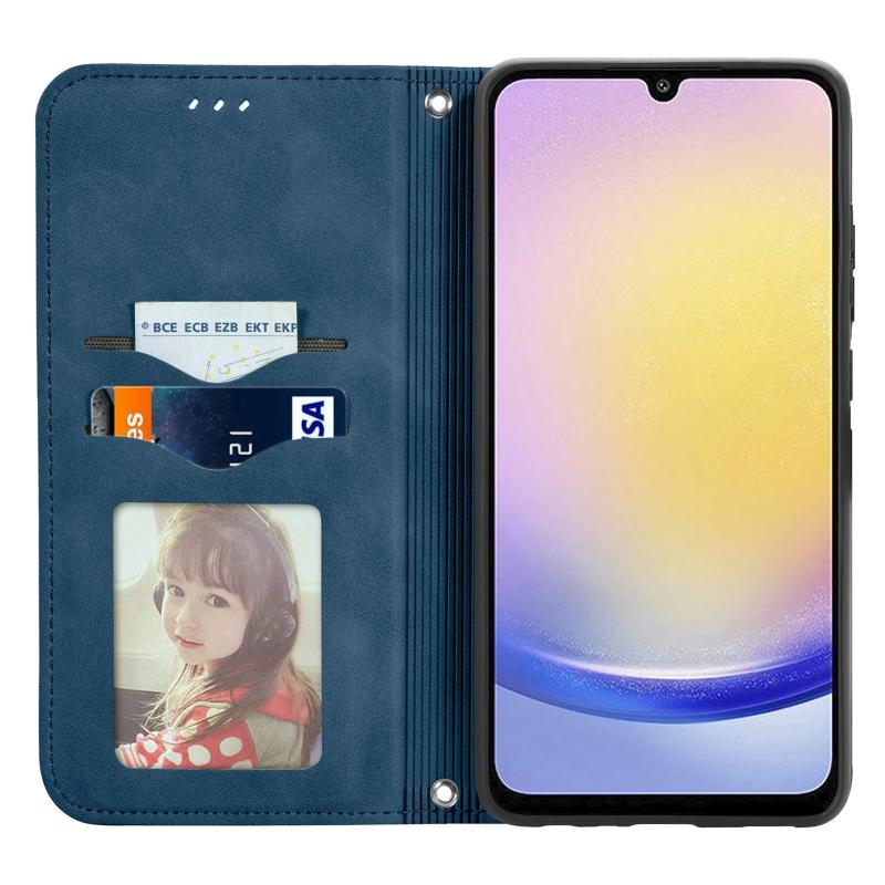 For Samsung Galaxy A25 5G Retro Skin Feel Magnetic Leather Phone Case(Blue)