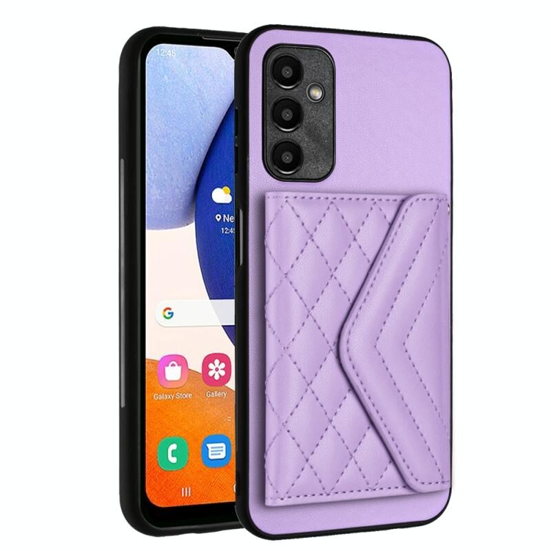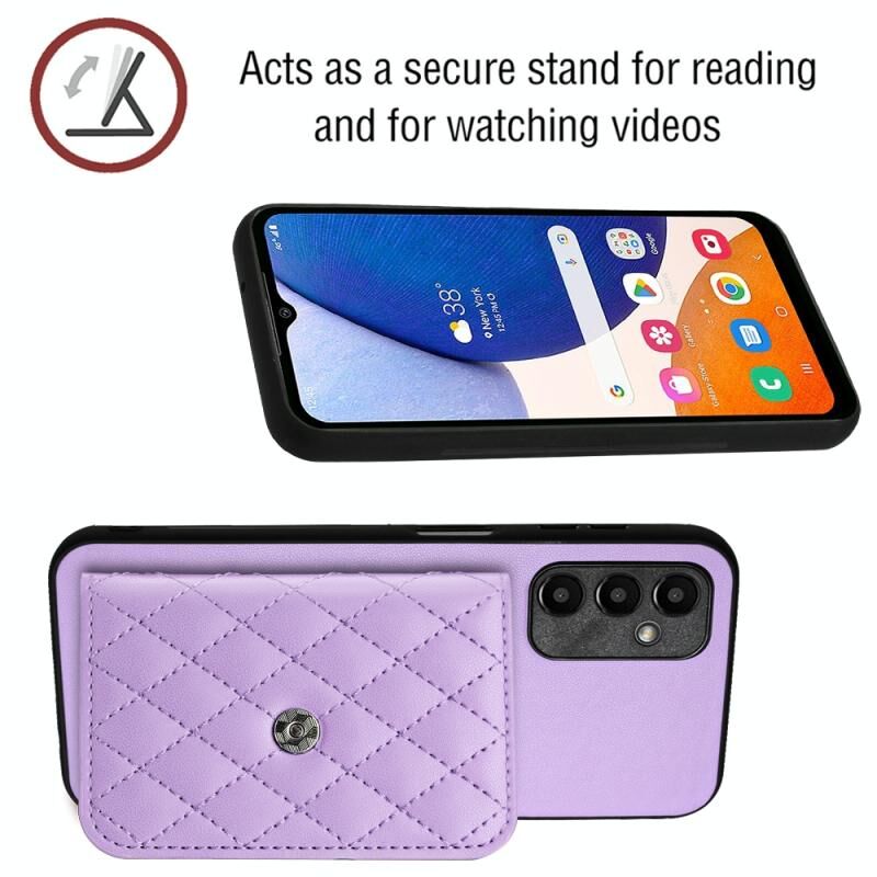 Για Samsung Galaxy A25 5G Rhombic υφή κάρτα τσάντα RFID υπόθεση τηλεφώνου με μακρύ κορδόνι (Light Purple)