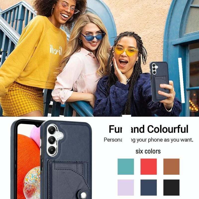 Για Samsung Galaxy A25 5G Ανθεκτική δερμάτινη θήκη τηλεφώνου με θήκη κάρτας (μπλε)