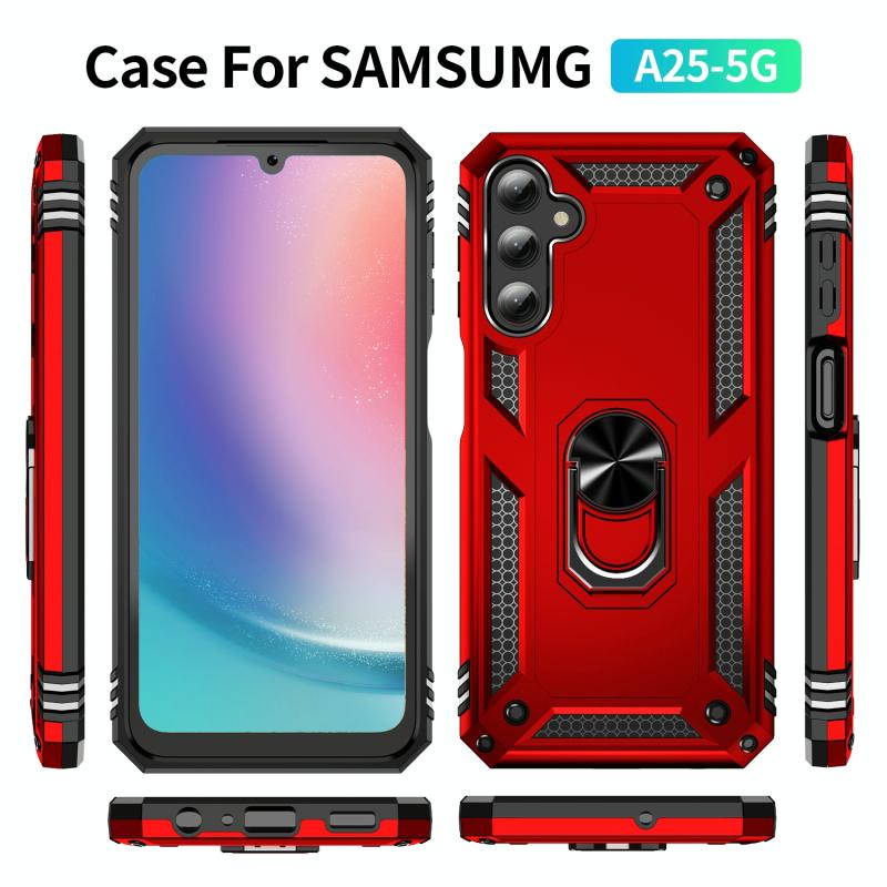 For Samsung Galaxy A25 5G Shockproof TPU + PC Phone Case with Holder(Red)