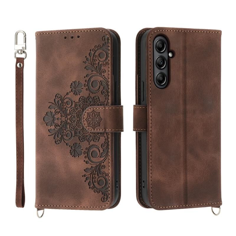 Για το Samsung Galaxy A25 5G Skin-feel Λουλούδια ανάγλυφο πορτοφόλι δερμάτινη θήκη τηλεφώνου (Καφέ)