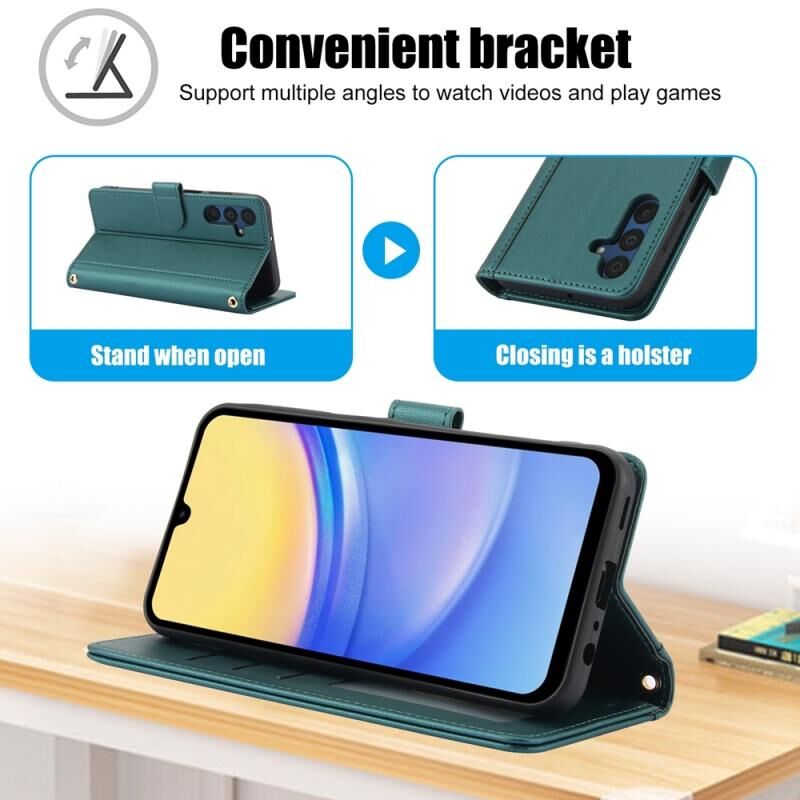 Για Samsung Galaxy A25 5G δέρμα αίσθηση καθαρό χρώμα κάρτα υποδοχές δερμάτινη θήκη τηλεφώνου με διπλή κορδόνι (πράσινο)