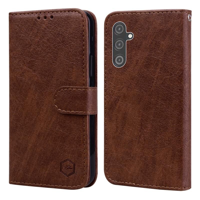 Θήκη κινητού τηλεφώνου Samsung Galaxy A25 5G με υφή δέρματος λάδι και PU + TPU (Μαύρο)