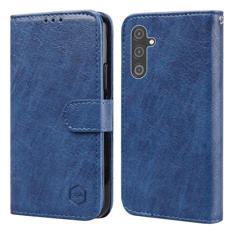 For Samsung Galaxy A25 5G Skin Feeling Oil Leather Texture PU + TPU Phone Case(Dark Blue)