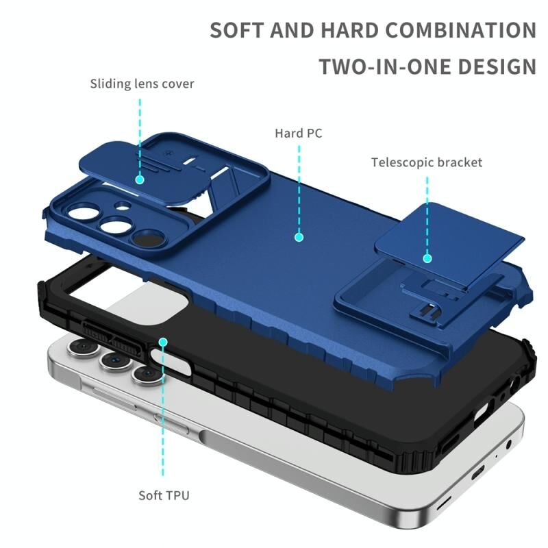 Για Samsung Galaxy A25 5G Στερεοσκοπική κάτοχος συρόμενη Camshield υπόθεση τηλεφώνου (μπλε)