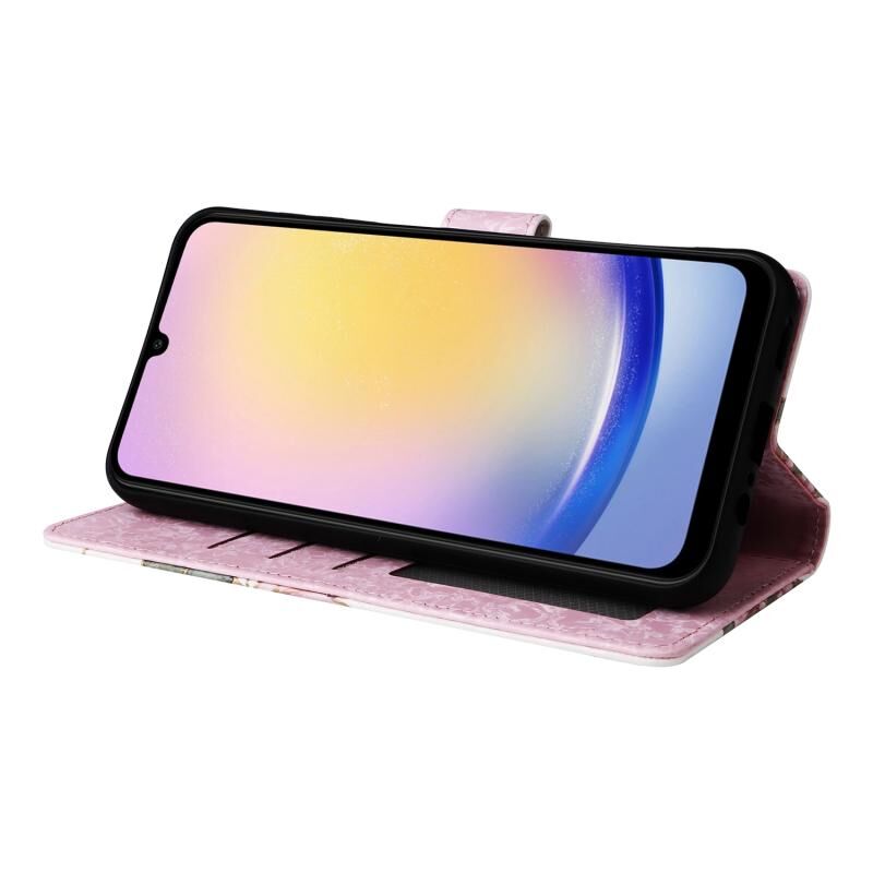 Θήκη Samsung Galaxy A25 με δερμάτινη υφή RFID και σχέδιο από χρυσό χρώμα (Τριαντάφυλλο)