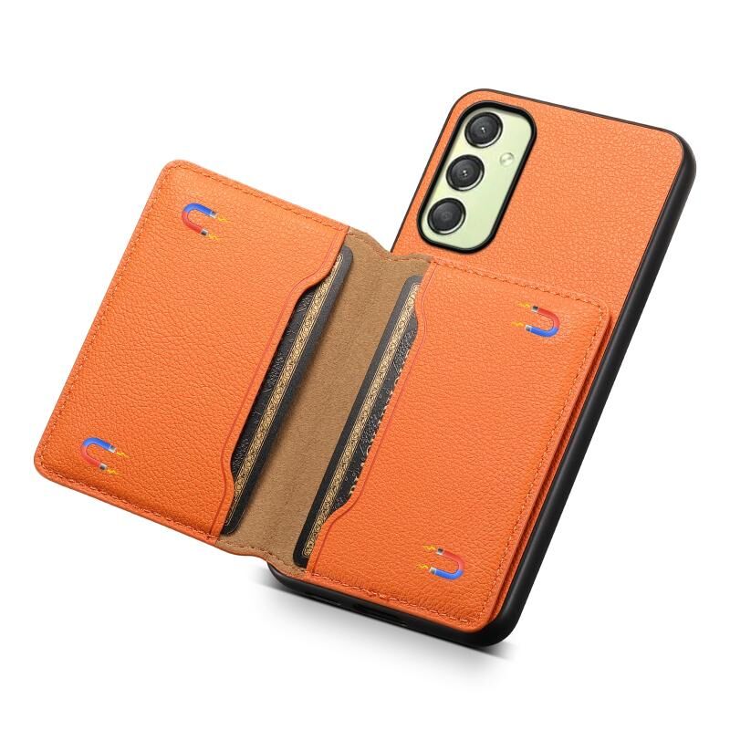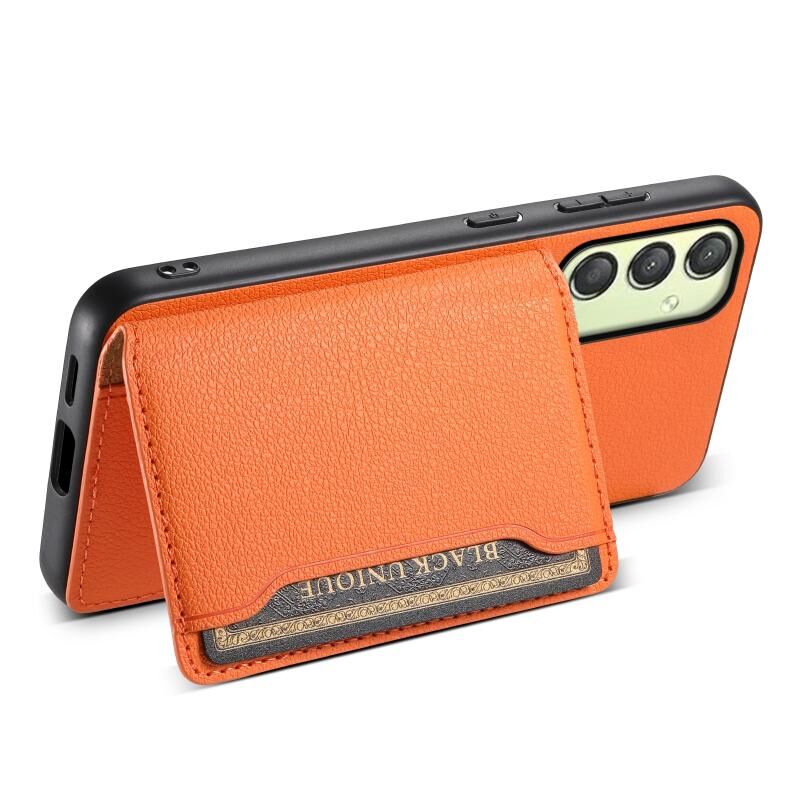 Θήκη κινητού τηλεφώνου Samsung Galaxy A25 με υφή μοσχαρίσιου δέρματος, σχέδιο κάρτας, πλήρης κάλυψη (Μαύρο)