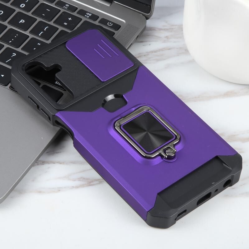 Για Samsung Galaxy A25 Κάμερα Ασπίδα κάρτας Samsung Galaxy A25 Κάμερα Ασπίδα κάρτα υποδοχή PC + TPU υπόθεση τηλεφώνου (μωβ)
