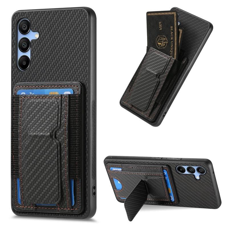 Για Samsung Galaxy A25 Carbon Fiber Fold Stand ελαστική κάρτα τσάντα υπόθεση τηλεφώνου (μαύρο)