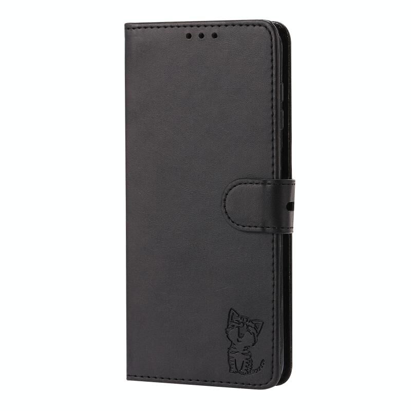 Για Samsung Galaxy A25 ανάγλυφο Happy Cat μοτίβο Flip δερμάτινη θήκη τηλεφώνου (μαύρο)