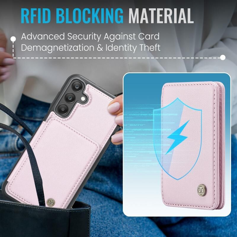 Θήκη τηλεφώνου JEEHOOD J05 για Samsung Galaxy A25, Δερμάτινη με Μαγνητικό Στυλ και Προστασία RFID (Ροζ) (JEEHOOD)