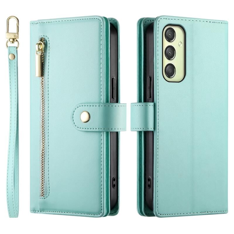 Για Samsung Galaxy A25 Nine Card-slot φερμουάρ πορτοφόλι τσάντα δερμάτινη θήκη τηλεφώνου (Μέντας πράσινο)