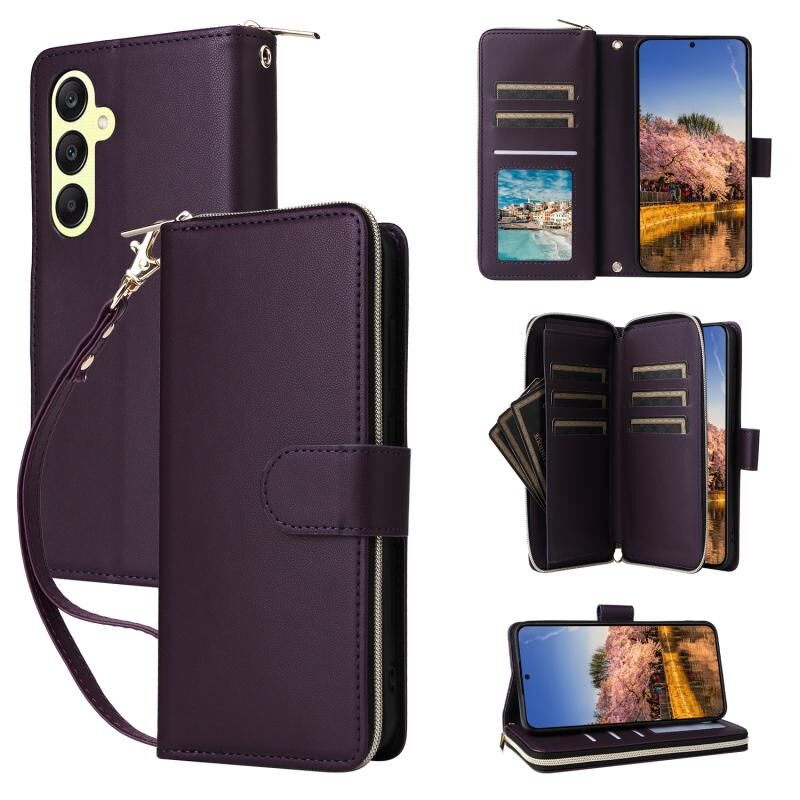 Για Samsung Galaxy A25 Εννέα-κάρτα υποδοχές φερμουάρ πορτοφόλι τσάντα δερμάτινη θήκη τηλεφώνου (σκούρο μωβ)