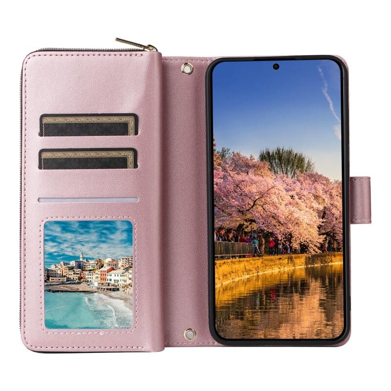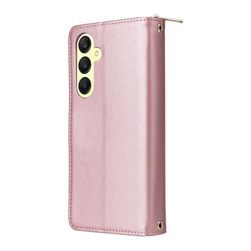 Για Samsung Galaxy A25 εννέα-κάρτα Slots φερμουάρ πορτοφόλι τσάντα δερμάτινη θήκη τηλεφώνου (Ροζ χρυσός)