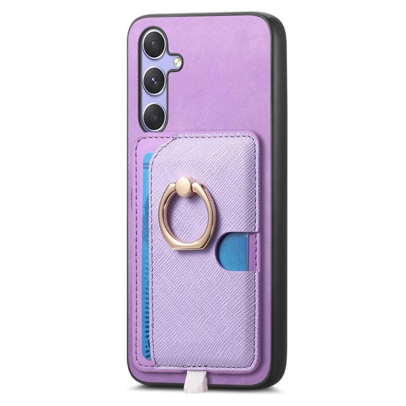 Θήκη κινητού Samsung Galaxy A25 Retro Cross από δέρμα με ενσωματωμένη βάση δακτυλιδιού και θήκη καρτών στο πλάι, συμβατή με MagSafe (Μπλε)