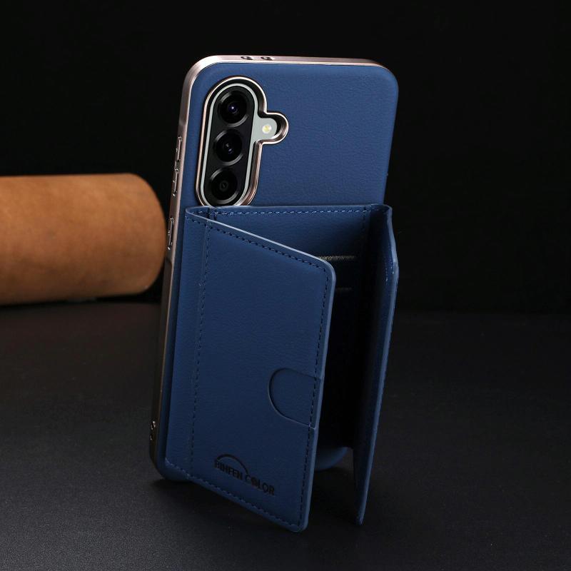 For Samsung Galaxy A25 Solid Color Horizontal Magnetic Card Bag RFID MagSafe Phone Case(Dark Blue)