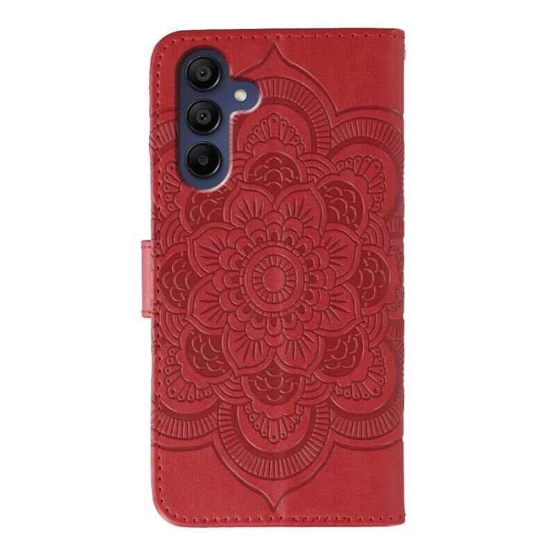 Θήκη δερμάτινη για Samsung Galaxy A25 με ανάγλυφο σχέδιο Sun Mandala (Κόκκινο)