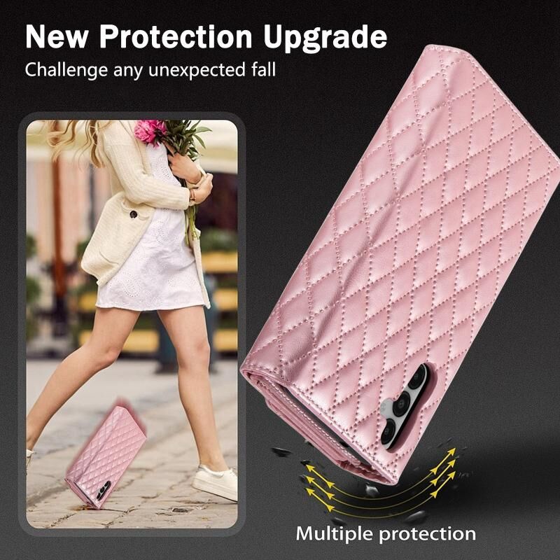 Για Samsung Galaxy A25 φερμουάρ πολλαπλών καρτών πορτοφόλι ρομβοειδής δερμάτινη θήκη τηλεφώνου (Rose Gold)
