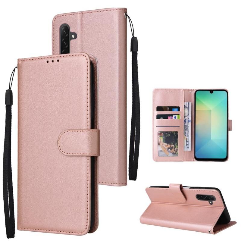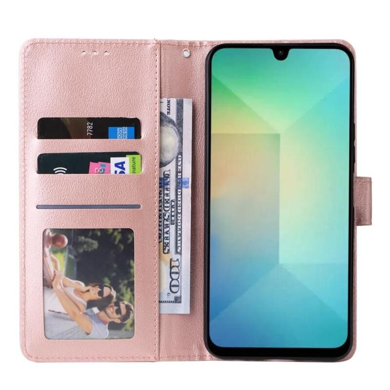 Για Samsung Galaxy A26 5G 3-Card Slots πολυλειτουργική δερμάτινη θήκη τηλεφώνου (ροζ χρυσό)
