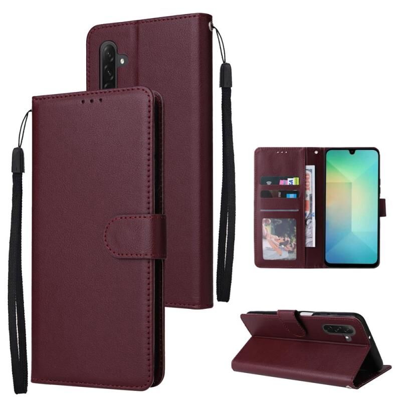 Για Samsung Galaxy A26 5G 3-Card Slots πολυλειτουργική δερμάτινη θήκη τηλεφώνου (κόκκινο κρασί)