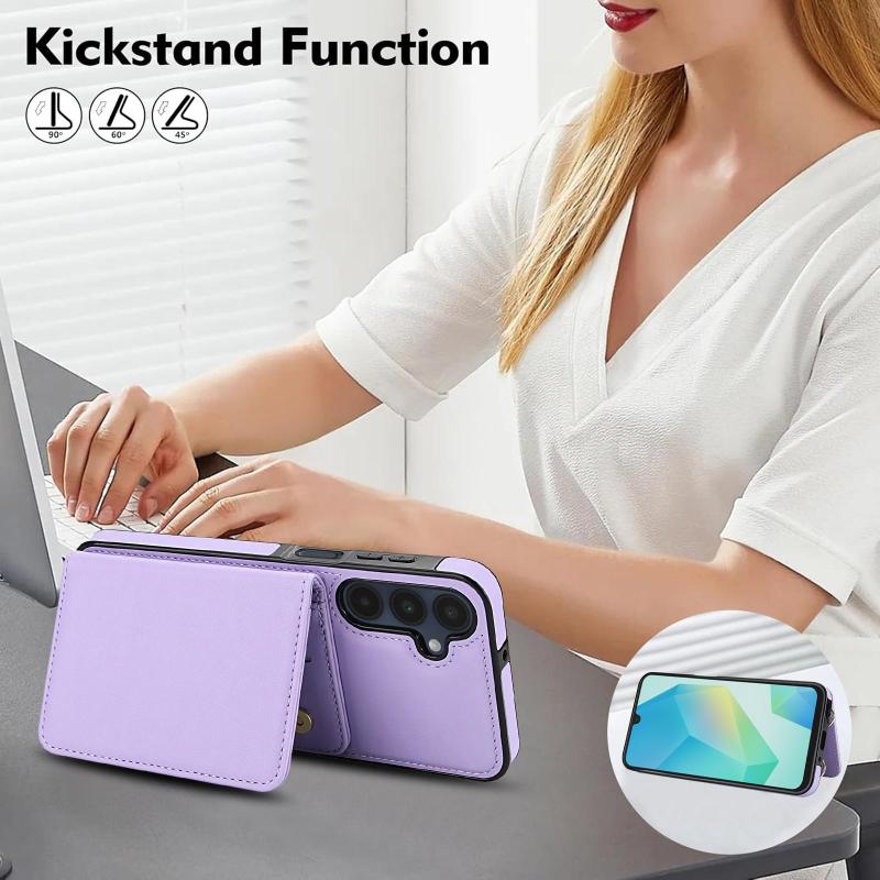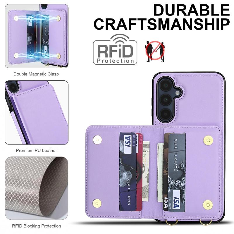 For Samsung Galaxy A26 5G Crossbody Dual-buckle Wallet RFID Back Leather Phone Case(Light Purple)