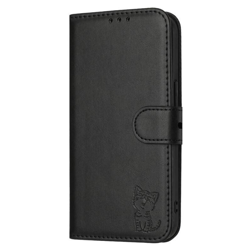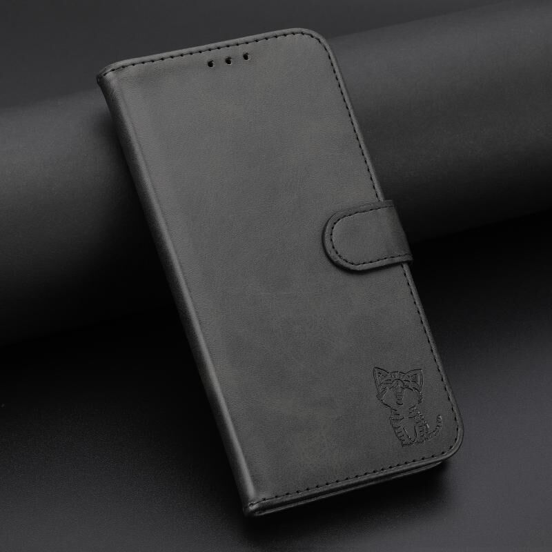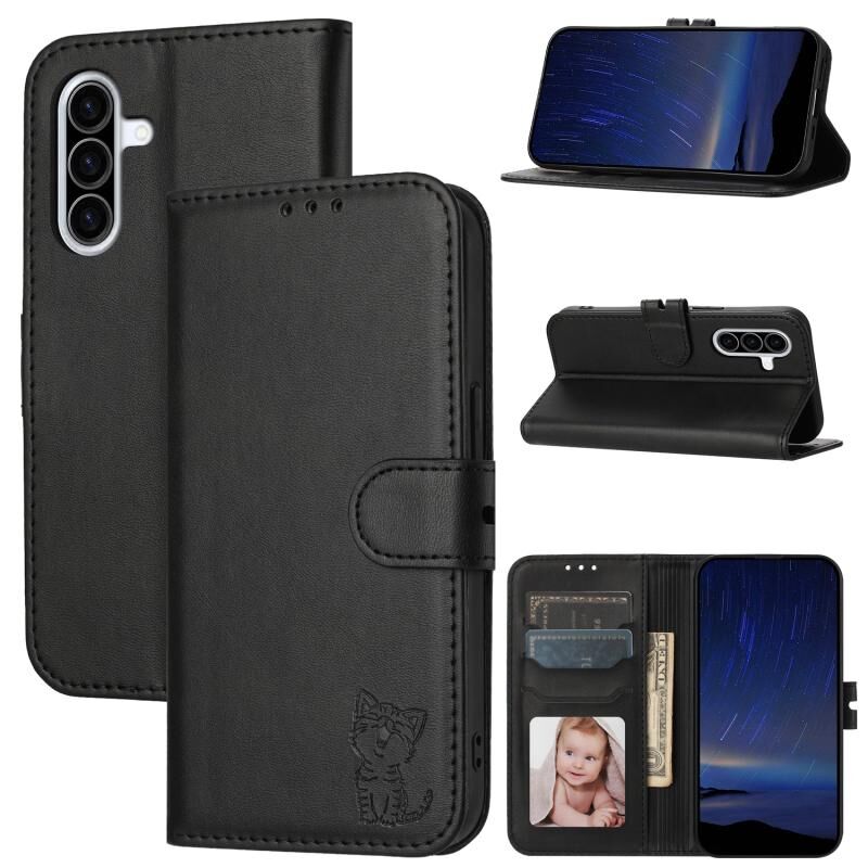 Θήκη τηλεφώνου Samsung Galaxy A26 5G, δερμάτινη, με ανάγλυφο σχέδιο χαρούμενης γάτας (Μπλε)