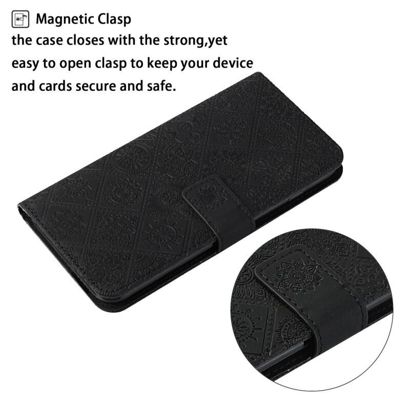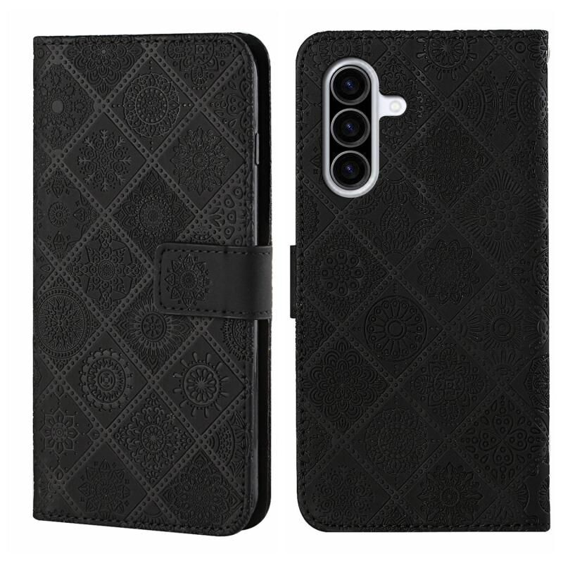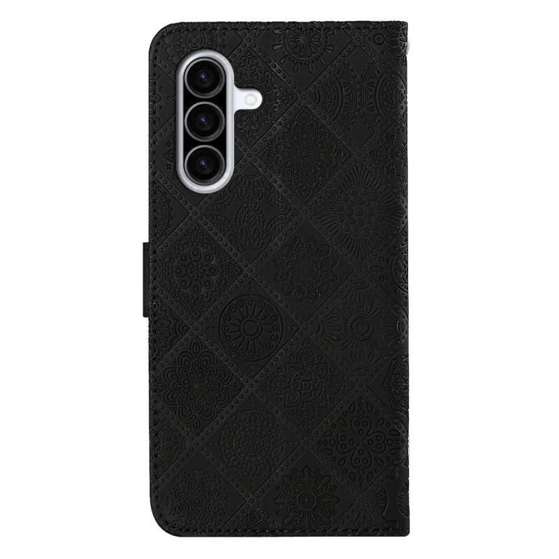 Θήκη τηλεφώνου Samsung Galaxy A26 5G από δέρμα με ανάγλυφο εθνικό μοτίβο (Μαύρο)