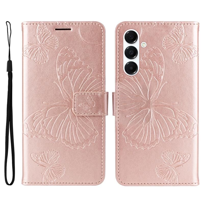 For Samsung Galaxy A26 5G Global 3D Butterfly Embossed Pattern Flip Leather Phone Case(Rose Gold)