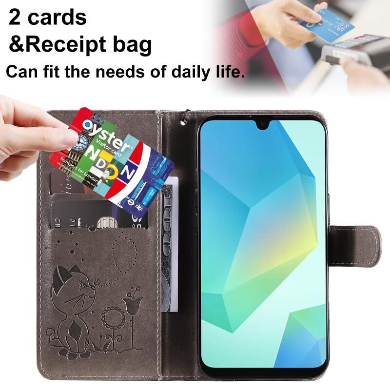 Θήκη δερμάτινη αντικραδασμική με ανάγλυφο σχέδιο "Cat Bee" για Samsung Galaxy A26 5G (Μπλε)