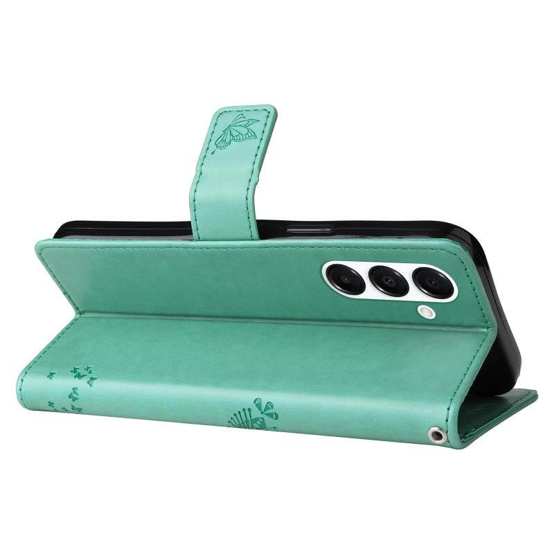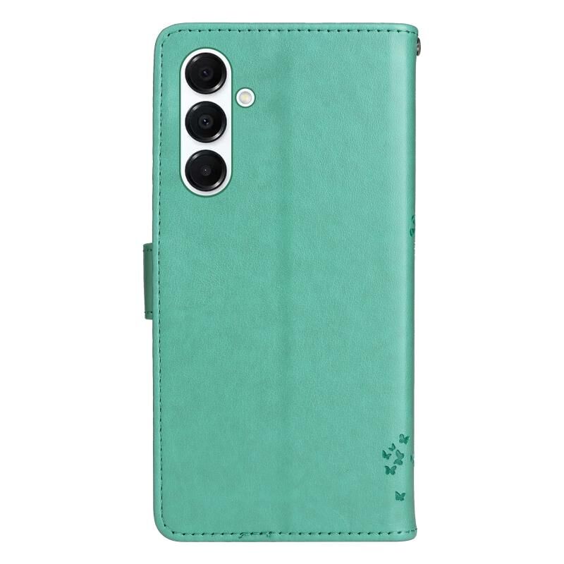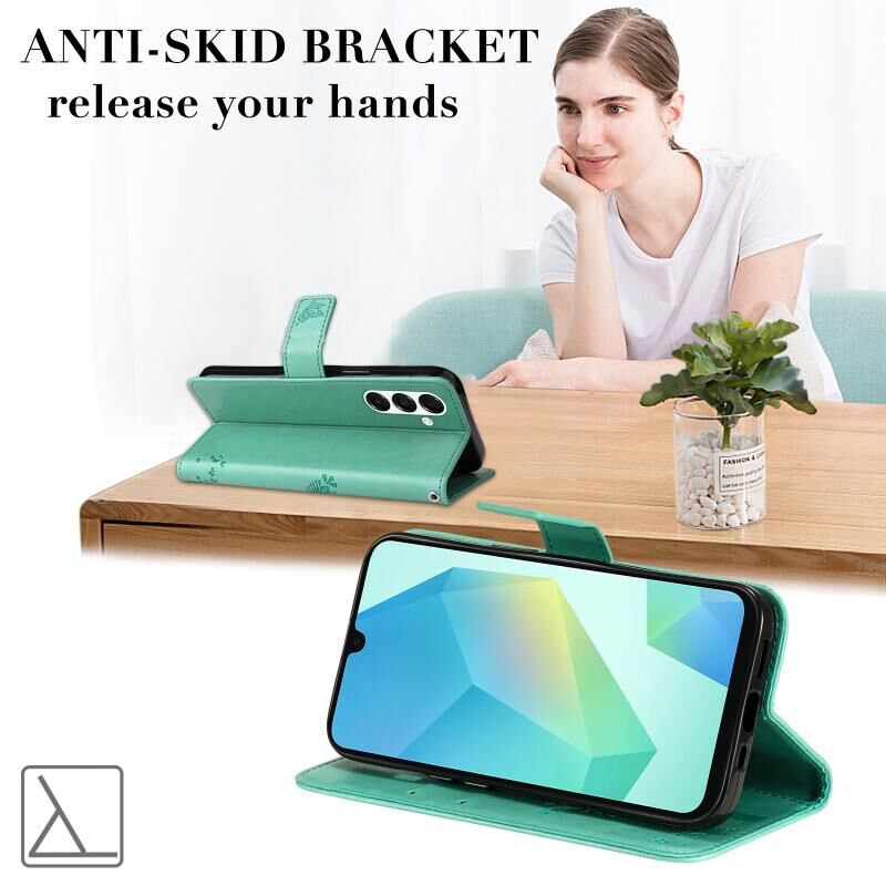 Θήκη τηλεφώνου Samsung Galaxy A26 5G, δερμάτινη, τύπου flip, με παγκόσμιο σχέδιο δέντρου & γάτας σε ανάγλυφο (πράσινο)