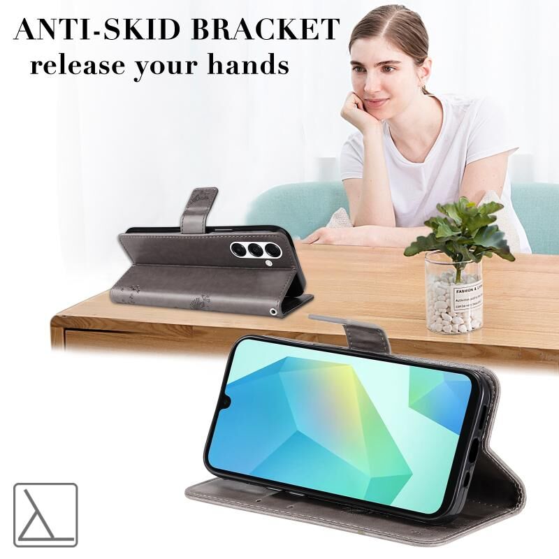 Θήκη τηλεφώνου Samsung Galaxy A26 5G, δερμάτινη, τύπου flip, με παγκόσμιο σχέδιο δέντρου & γάτας σε ανάγλυφο (Ροζ)