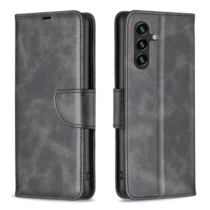Για Samsung Galaxy A26 5G Lambskin υφή καθαρό χρώμα Flip δέρμα τηλέφωνο υπόθεση (Μαύρο)