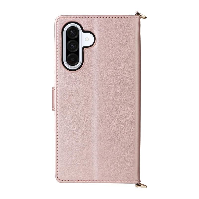 Θήκη τηλεφώνου Samsung Galaxy A26 5G πολυλειτουργική από δέρμα με 6 υποδοχές για κάρτες και λουρί καρπού (ρόζ)