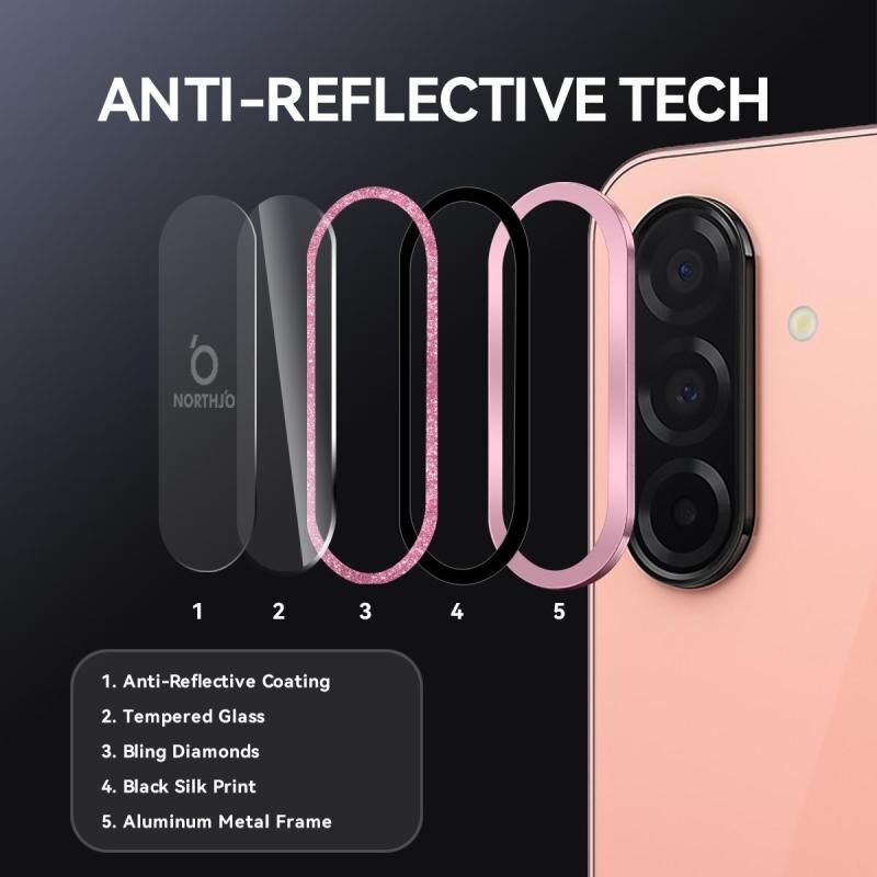 Για Samsung Galaxy A26 5G NORTHJO 1 Σετ Προστασίας Φακού Κάμερας με Λαμπερό Μεταλλικό Δακτύλιο (Ροζ) (ρόζ)