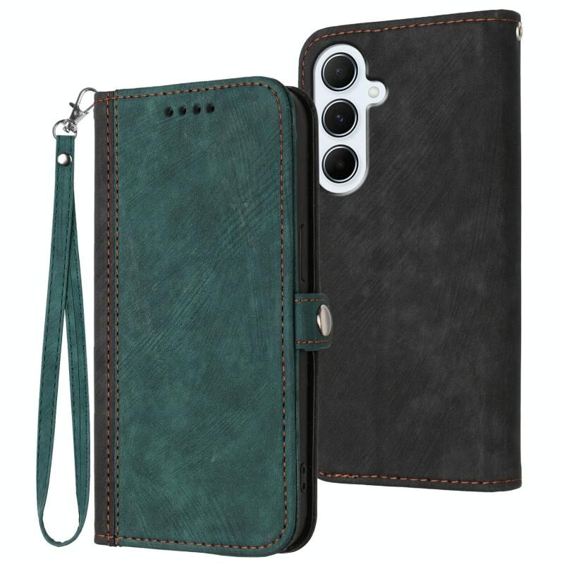 Για Samsung Galaxy A26 5G Side πόρπη διπλή πτυχή χέρι λουράκι δερμάτινη θήκη τηλεφώνου (σκούρο πράσινο)